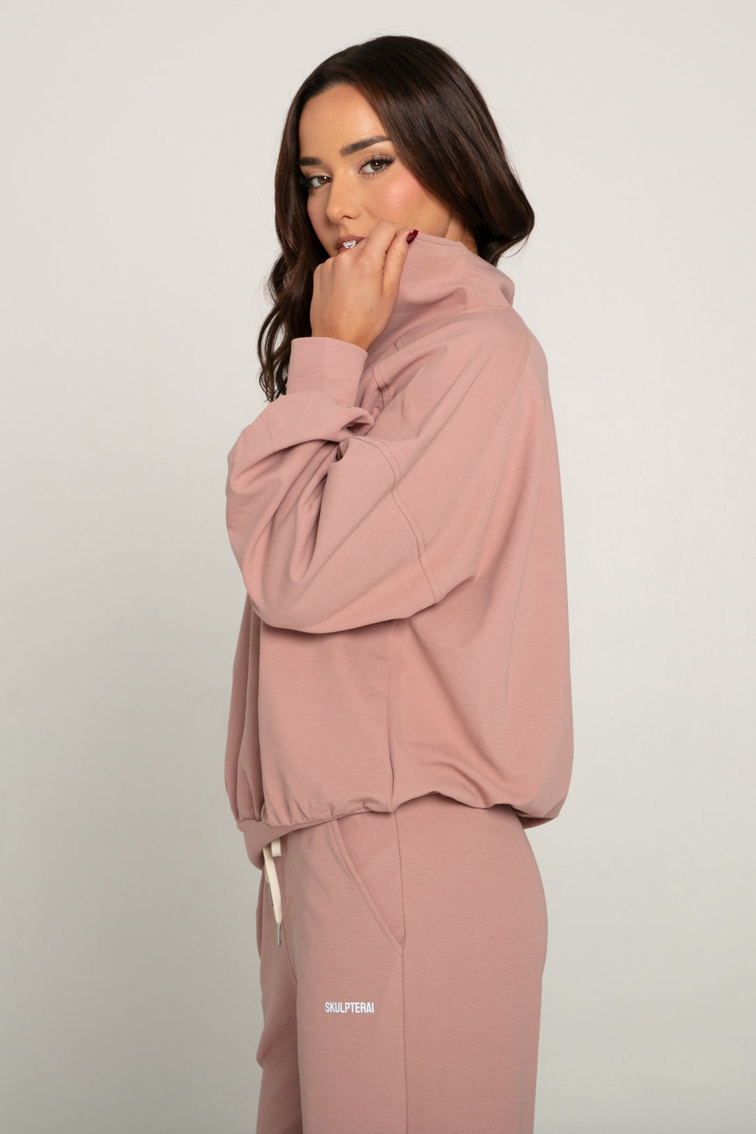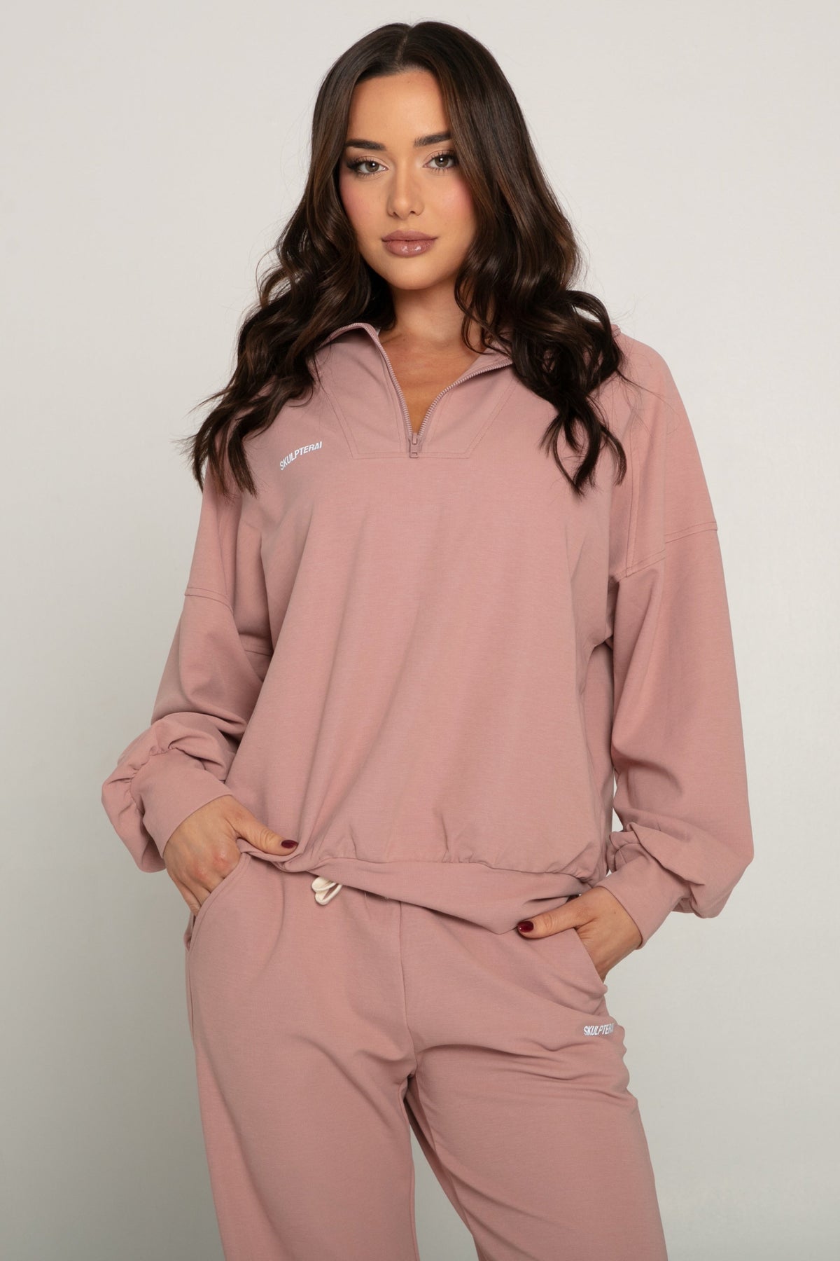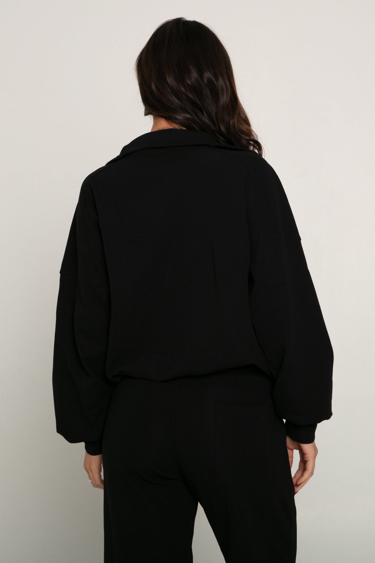 Designed to pair with our Sunday Wide Leg Trackpant, this oversized quarter zip sweater is your go-to for off-duty days. Made from a soft cotton-poly-spandex blend, it features a relaxed drop-shoulder fit, high zip collar, and ribbed cuffs for structure and warmth.